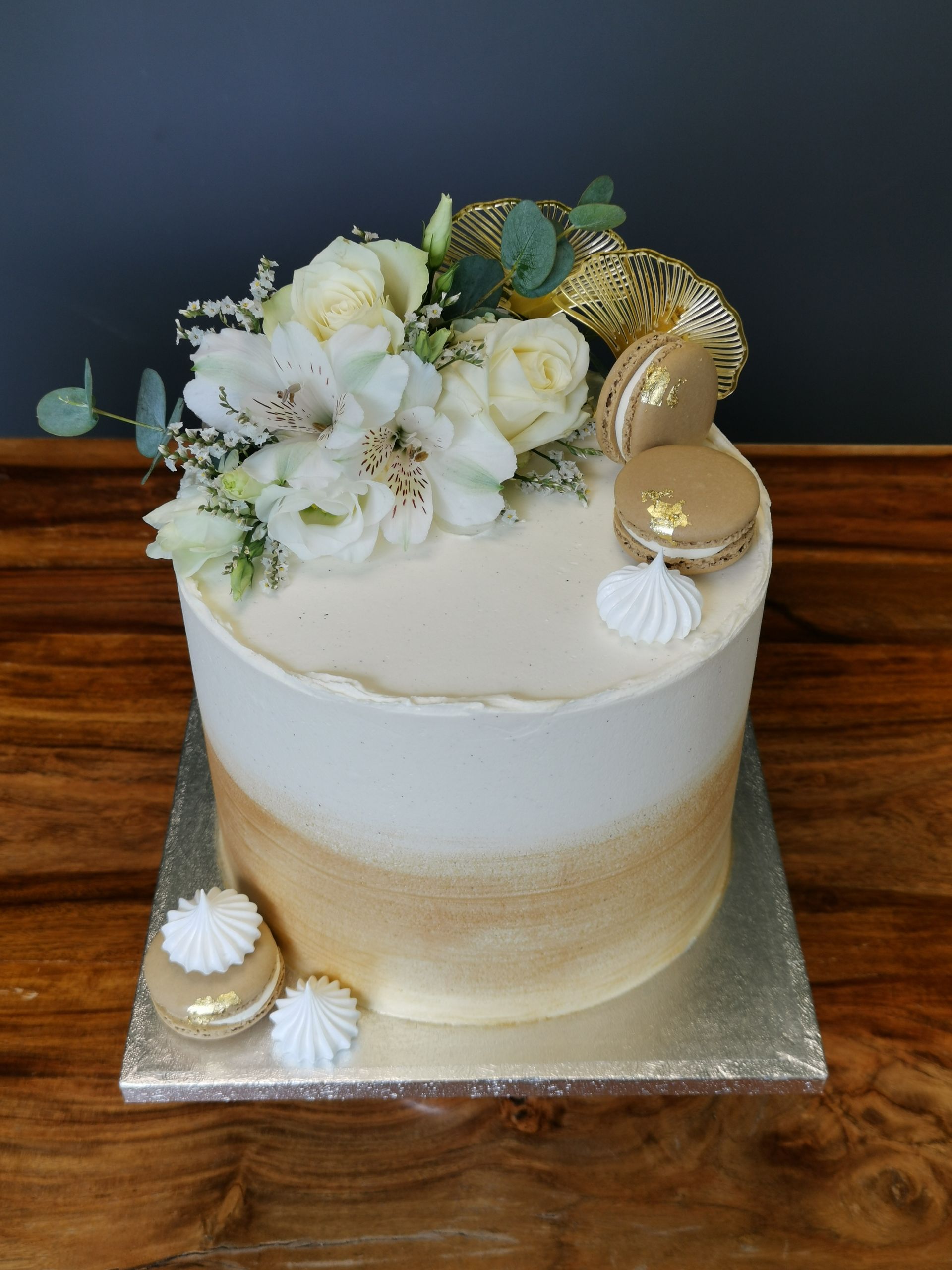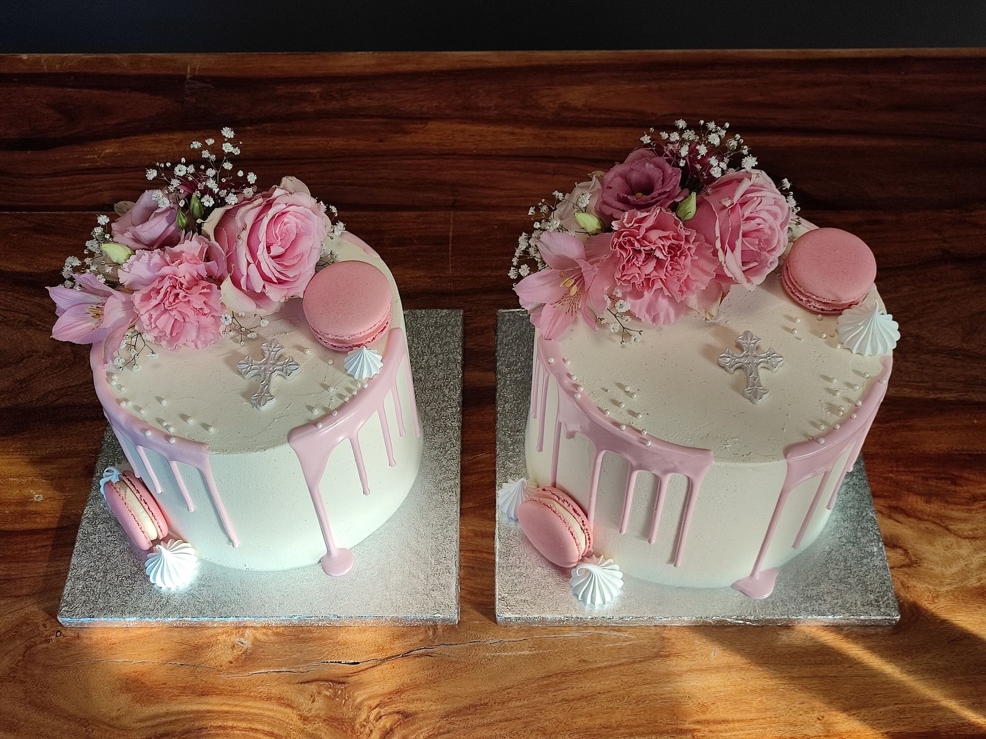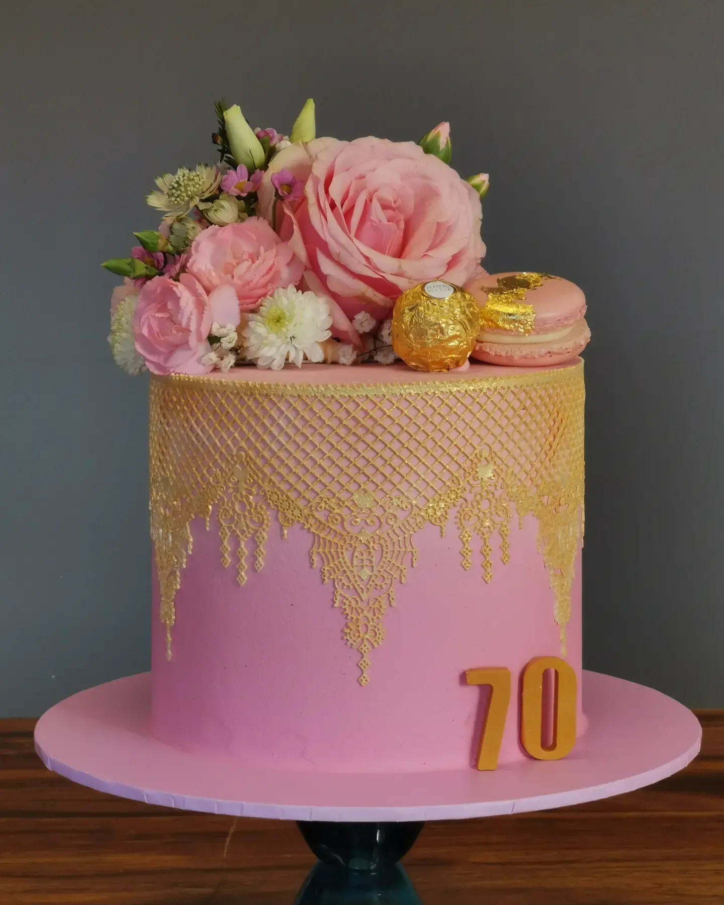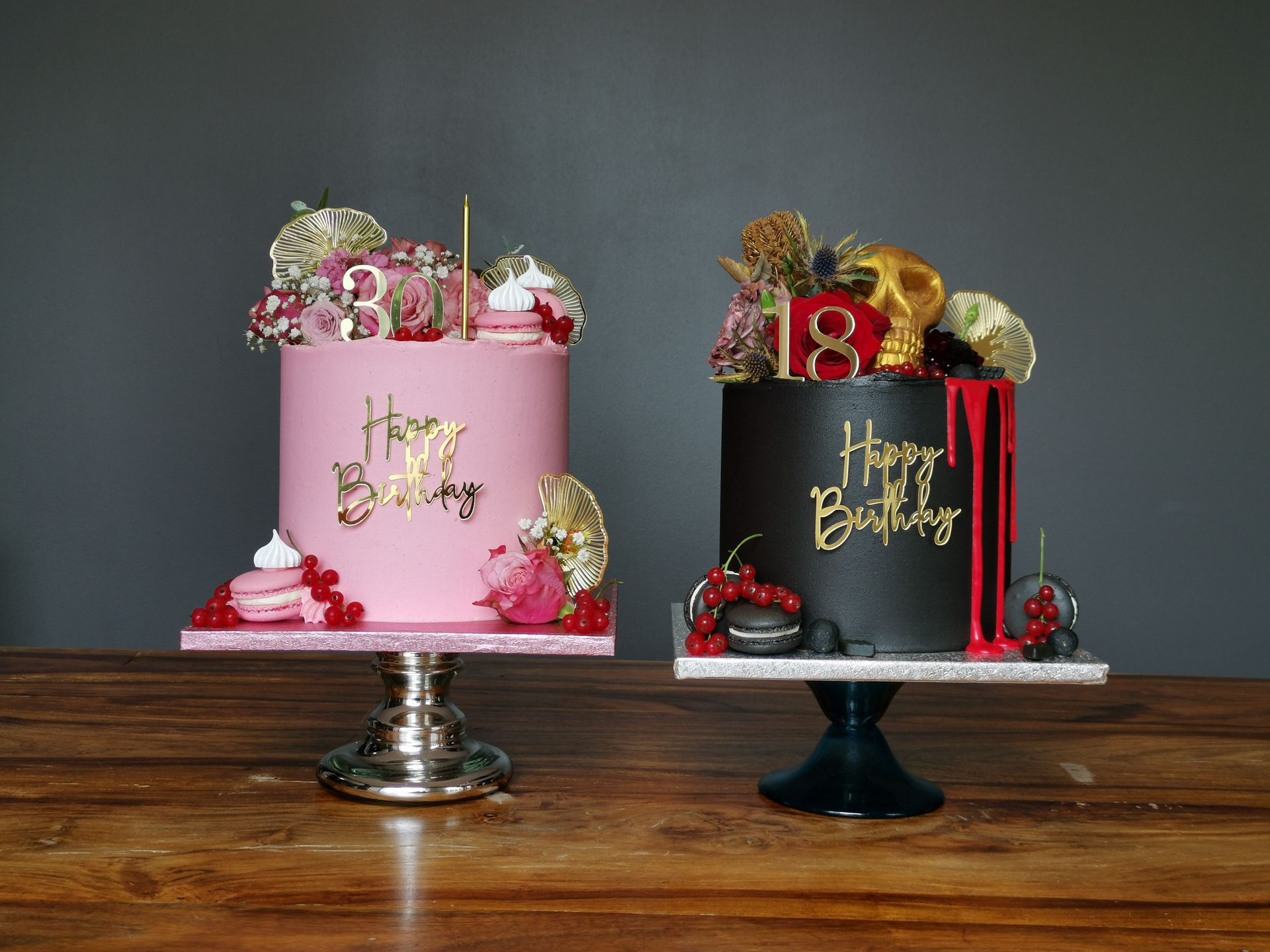 Perus koristeisiin kuuluu runsas koristelu esimerkiksi kukat, kuva, ikä, macaron-leivoksia, marenkeja.