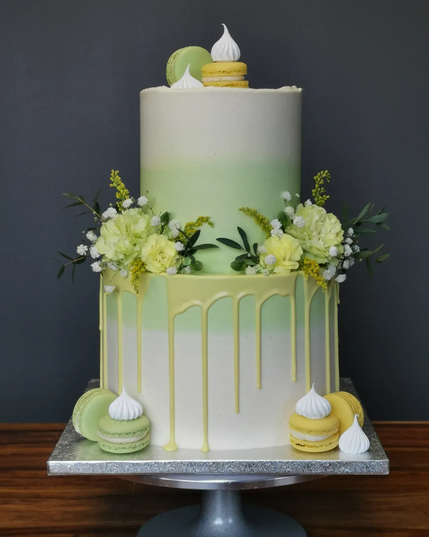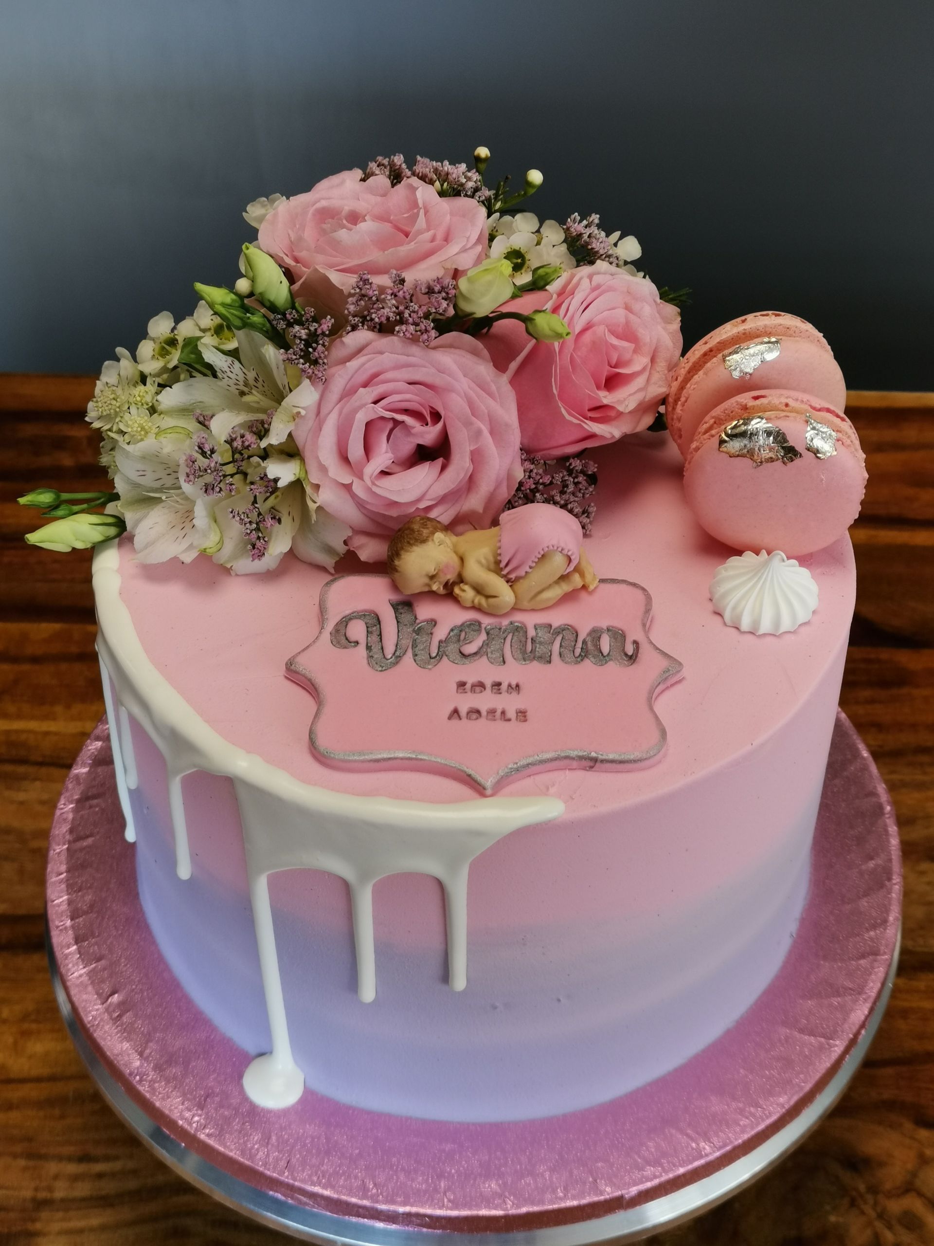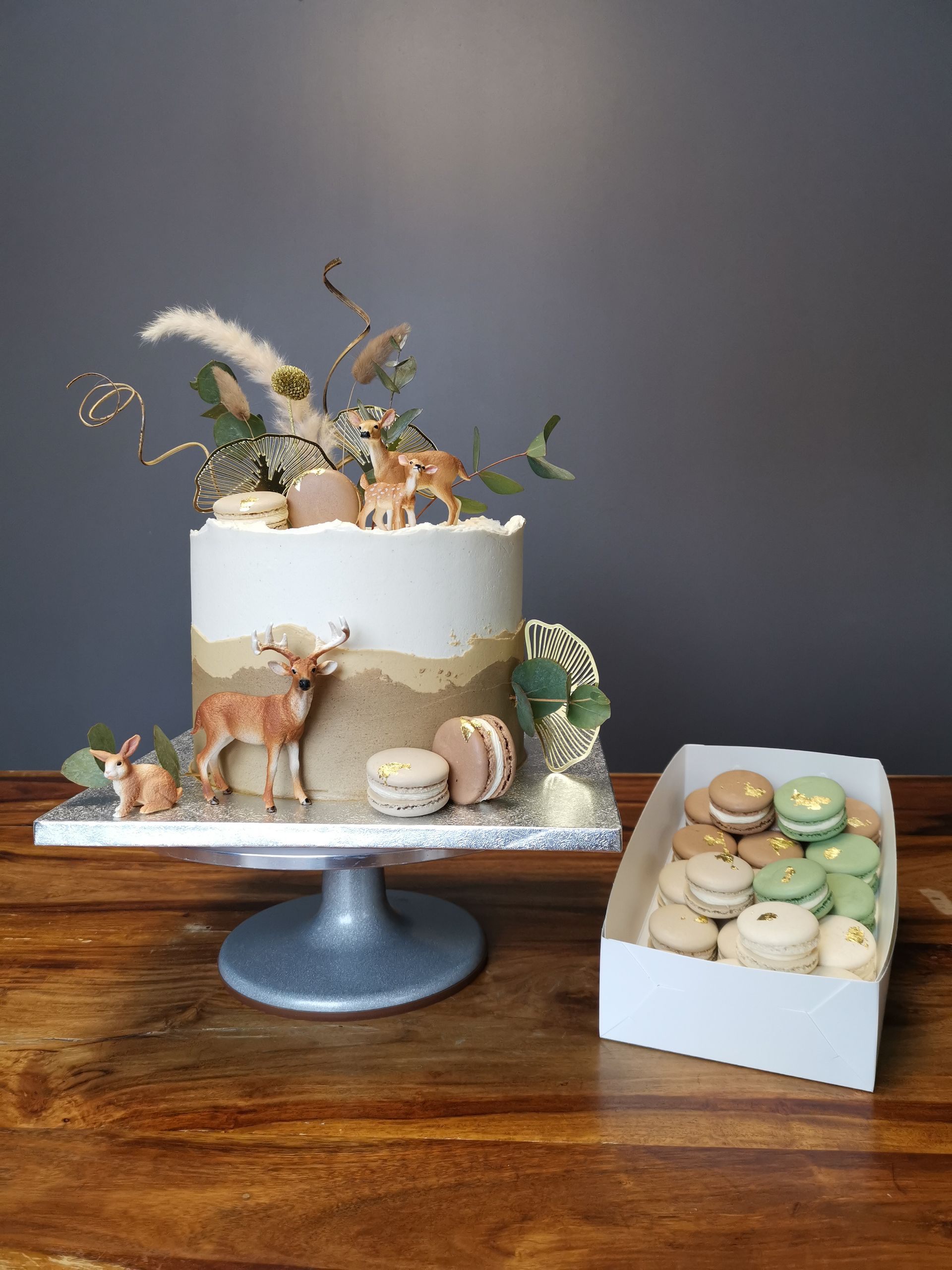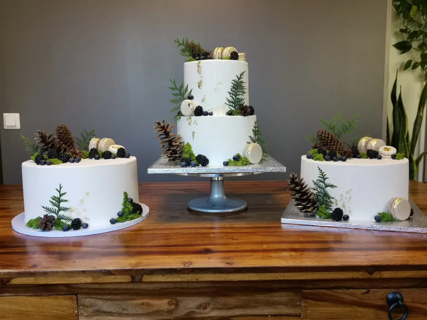 Perus koristeisiin kuuluu runsas koristelu esimerkiksi kukat, kuva, ikä, macaron-leivoksia, marenkeja.