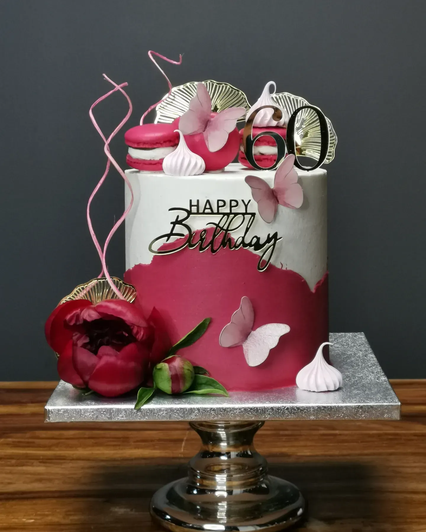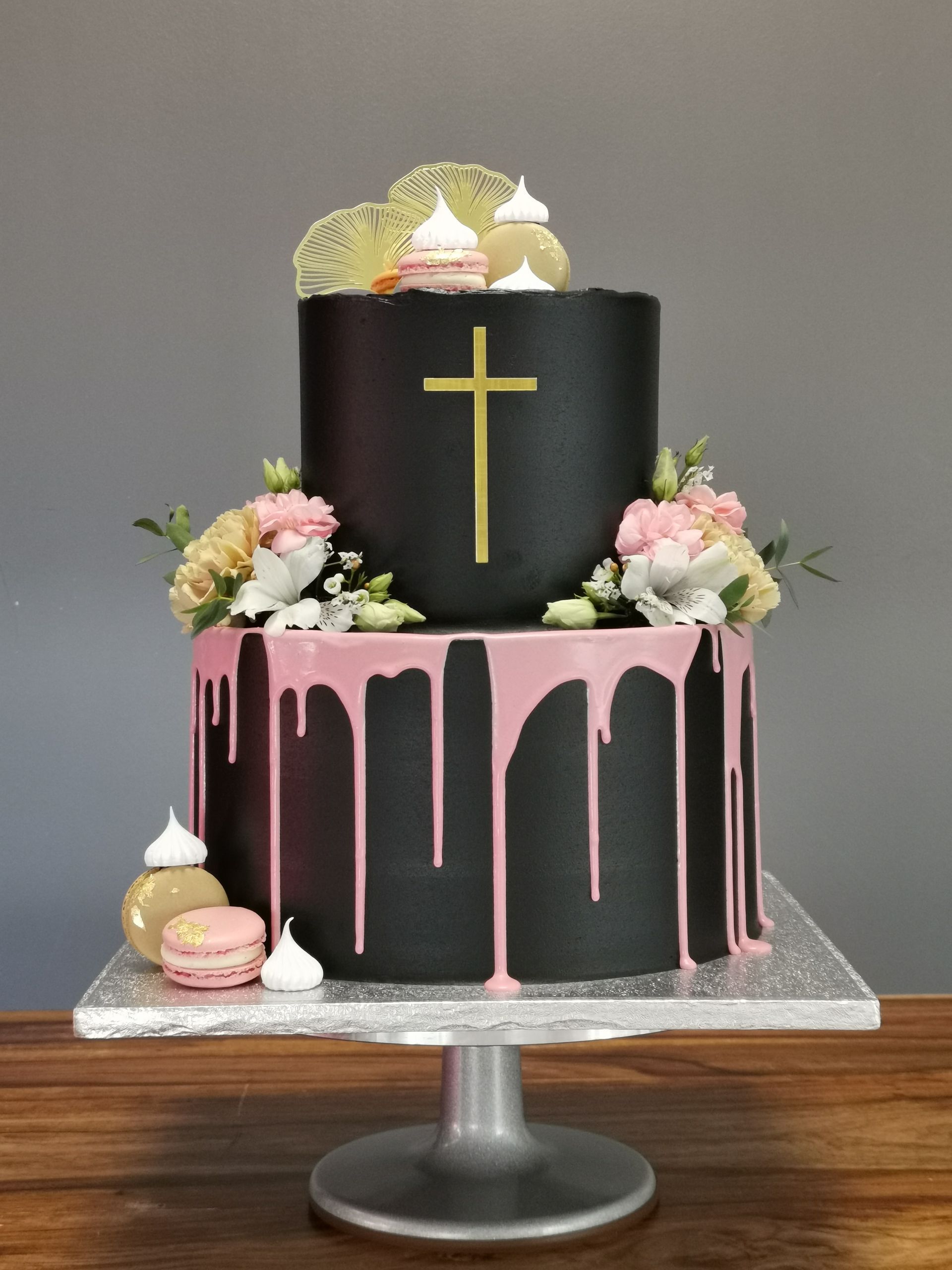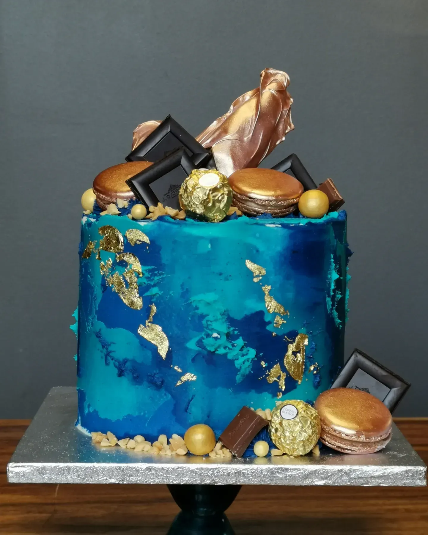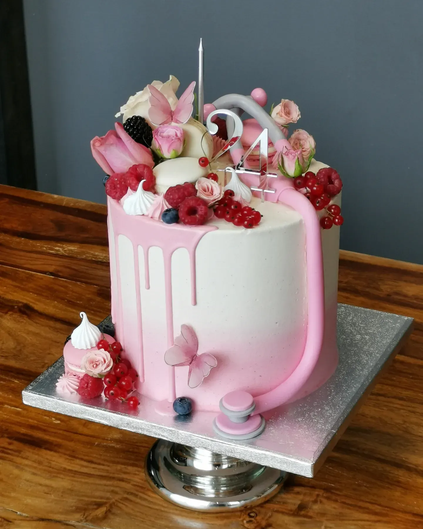 Perus koristeisiin kuuluu runsas koristelu esimerkiksi kukat, kuva, ikä, macaron-leivoksia, marenkeja.